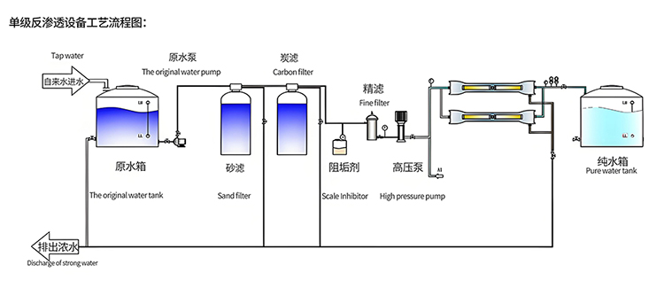 1、反滲透是在室溫條件下,采用無相變的物理方法,將含鹽水進行脫鹽、除鹽。超薄復合膜元件的脫鹽率高,并可同時去除水中的膠體、病毒等;
